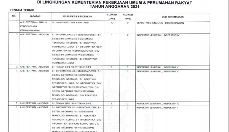 Formasi CPNS 2021 Kementerian Pekerjaan Umum dan Perumahan Rakyat (PUPR) Sebanyak 1.057 formasi