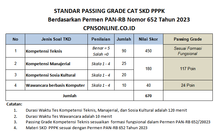 Dengan demikian nilai ambang batas atau passing grade CPNS 2023 adalah sebagai berikut.